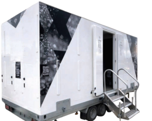 The Artists Series Trailers is one of our luxury mobile event bathrooms for hire and perfect for any number of guests for up to around 300 for 6 hours. It requires a water connection and a power connection and is delivered by a Utility Vehicle. The unit is Air Conditioned. Hand towel and soap comes as standard.
