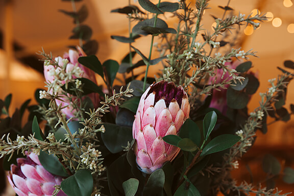 Save money, time and effort with real flowers and just let us handle this for you. We have 4 large native flowers in glass vases
